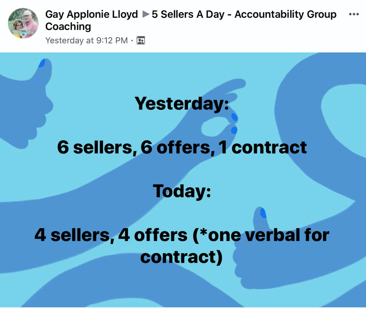 So... in this accountability challenge, we want to challenge you talk to at least 5 sellers a day, and make 3 offers a day.